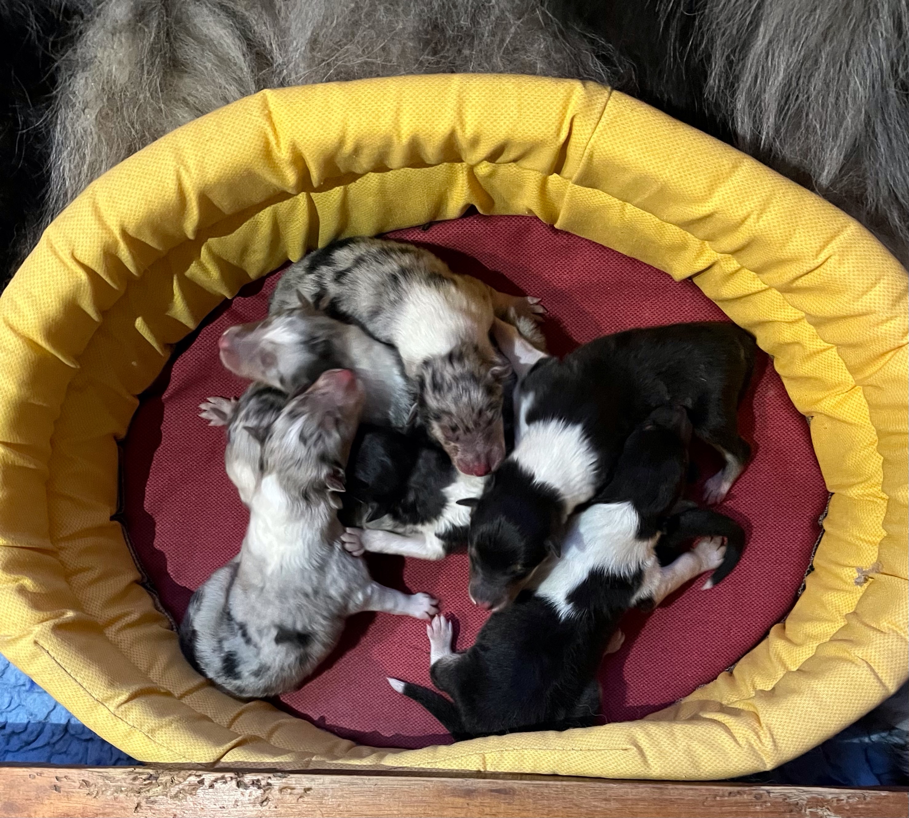 È NATA UNA SPLENDIDA CUCCIOLATA DI TRICOLORI E BLUE MERLE